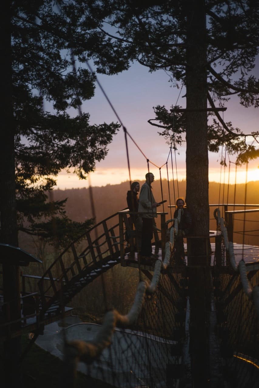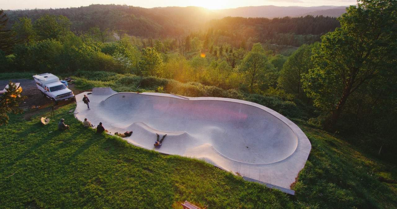 Somewhere near the Columbia River Gorge, Washington you’ll find this hand built tree house, The Cinder Cone. There are 2 tree house buildings tied together by a long wooden bridge, wood fired soaking tub, a large concrete skate bowl and sauna. It was built by a group of friends in 2014 and is truly an inspiration.