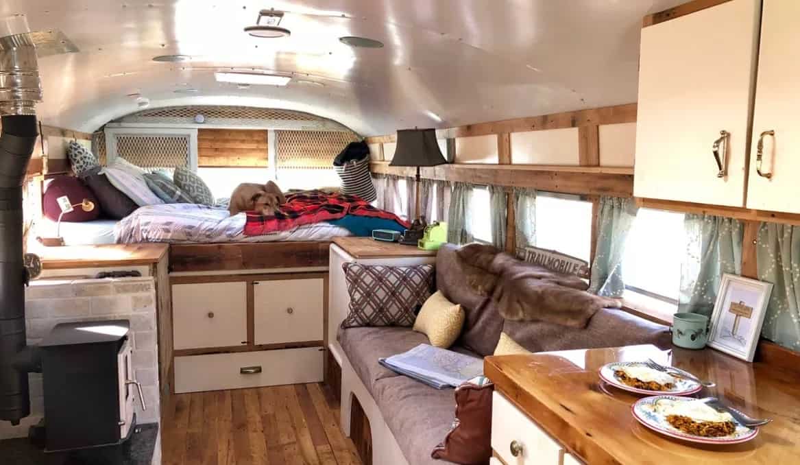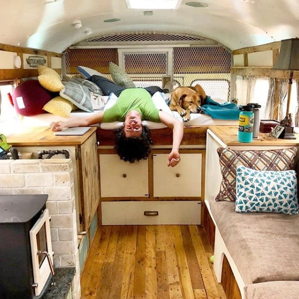 Tamra and JT converted a 91 Blue Bird School bus into tiny home on wheels. This has allowed them to travel more, increase their self-sufficiency and downsize their lifestyle.
